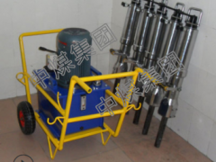 混凝土劈裂机是一种用于分裂材料的机器,多用在建筑、装修上、工程建设、矿石开采。混凝土劈裂机由液压动力站和分裂枪两大部分组成,分裂机由泵站输出的超高压油驱动油缸产生巨大推动力,并经机械放大后即可使被分裂物体按预定方向裂开。 液压站供给60Mpa的液压油到分裂枪上,分裂枪可产生几十吨的推力,分裂机推动契片向两边扩张,扩张力可达几百吨,从而使物体从内部分裂而分离开。Zmjt055